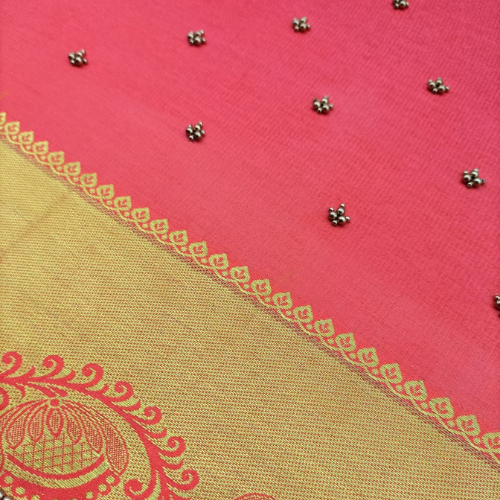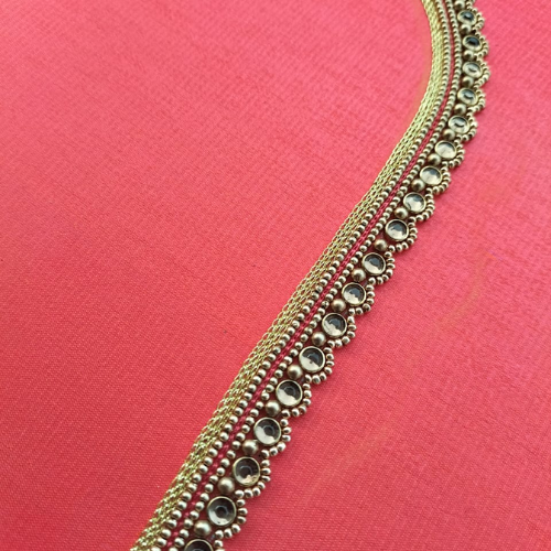 Gold beads and kundan stones used for the neckline and sleeves to give a simple and charm look